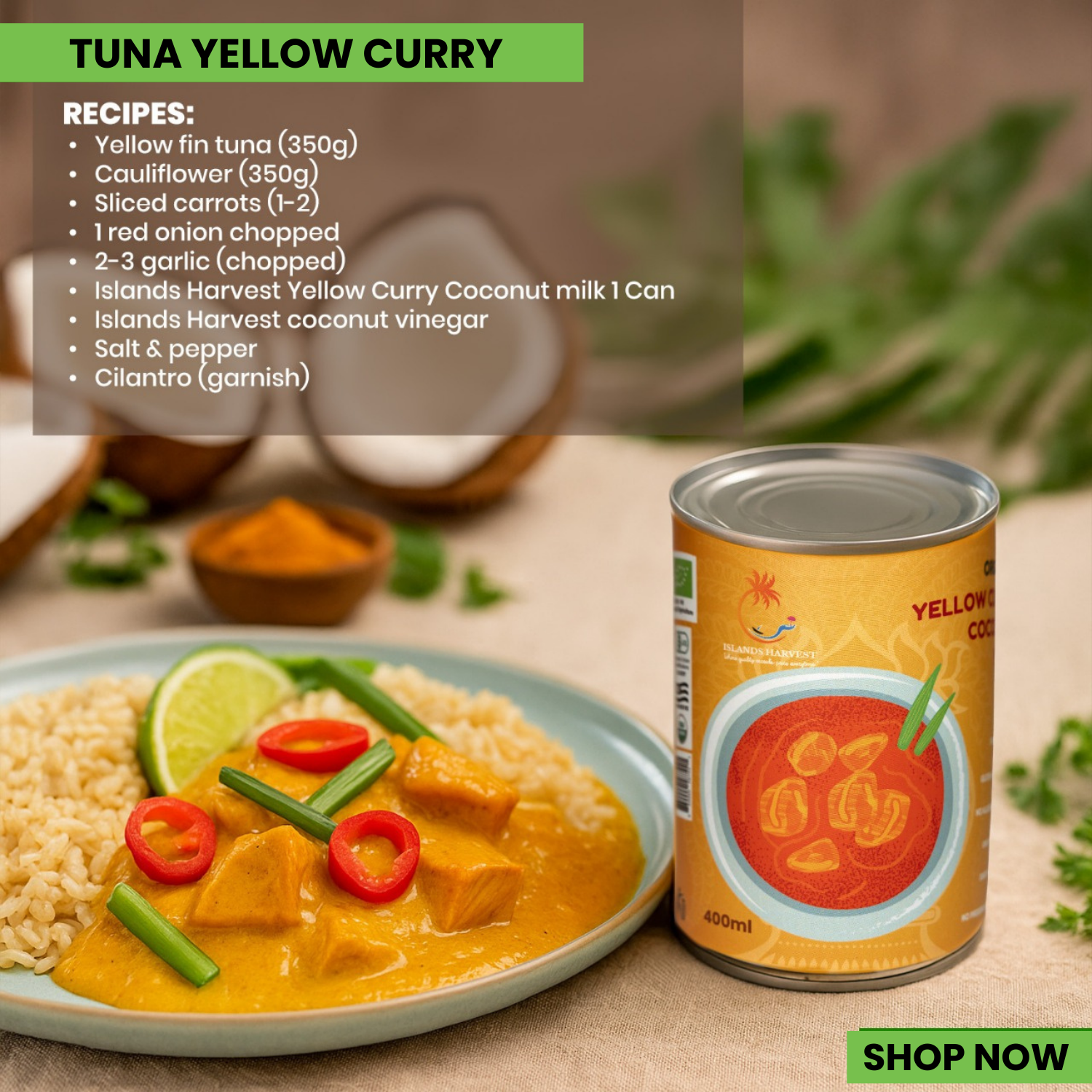 Islands Harvest Yellow Curry Coconut milk 1 Can