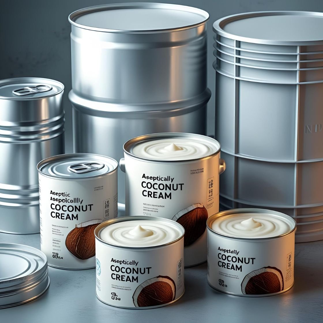 packed aseptically to preserve freshness and quality. This high-fat, sweet coconut cream is supplied in bulk globally