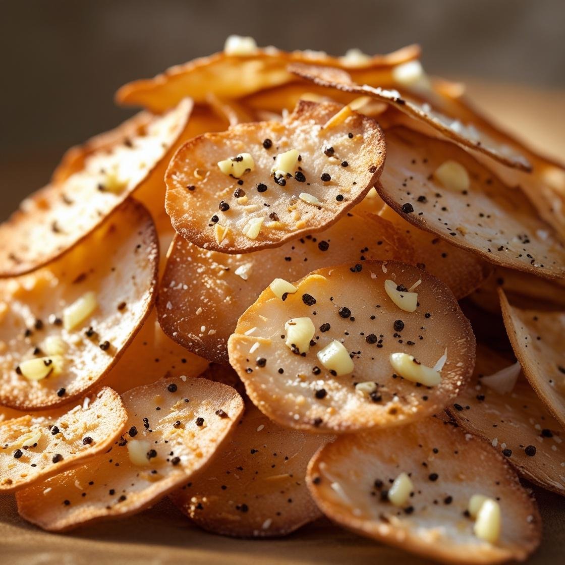 Coconut chips with pepper and garlic