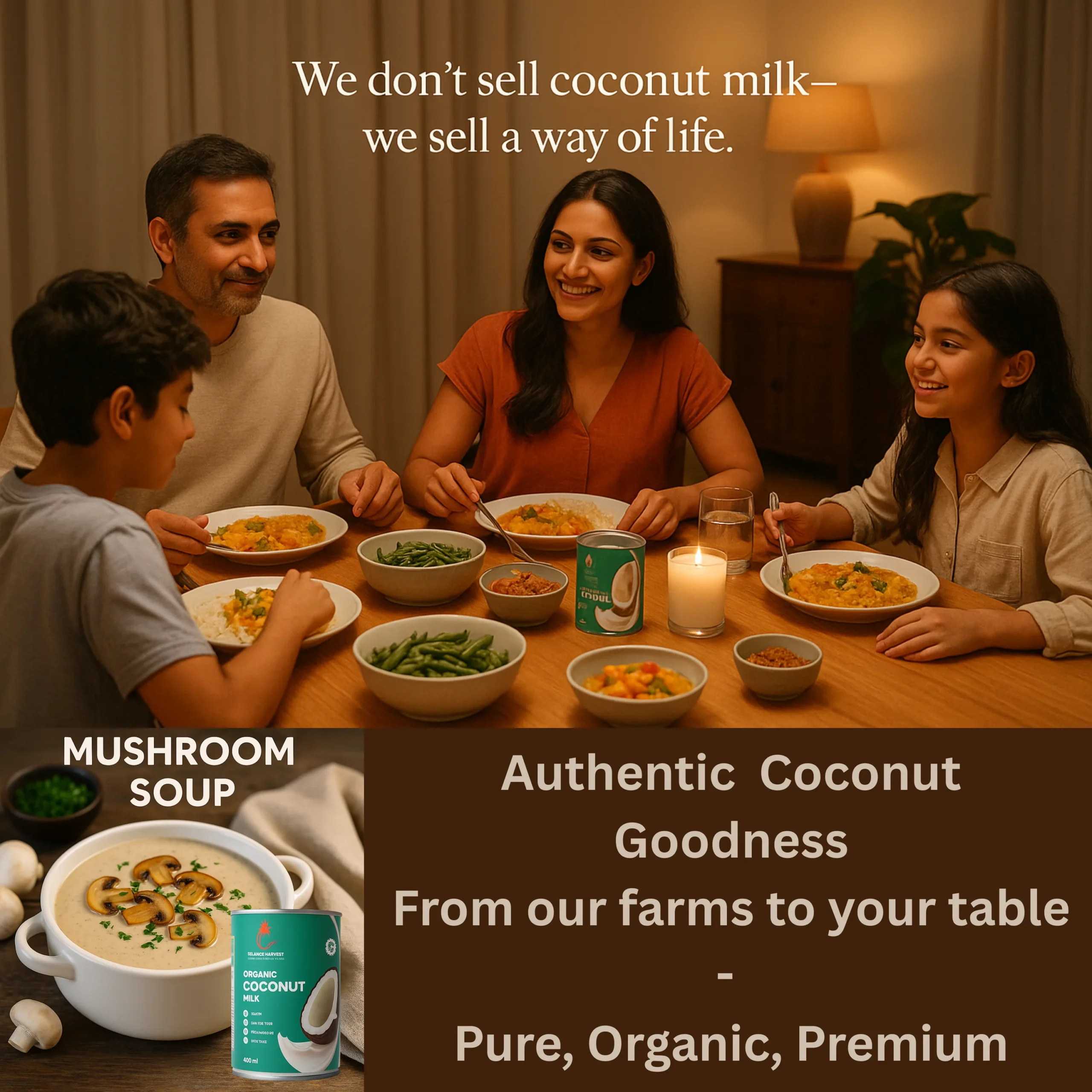 Our organic coconut milk is made from certified organic coconuts, purified water, and minimal natural stabilizers. Free from synthetic additives, preservatives, and sweeteners, it delivers the authentic taste and texture of natural coconut milk in every can.