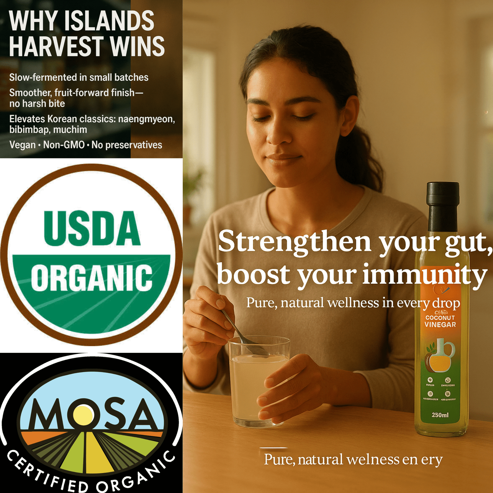 Made from organic coconut water, our coconut vinegar offers a naturally fermented, aromatic profile that enhances the flavor of your dishes.
